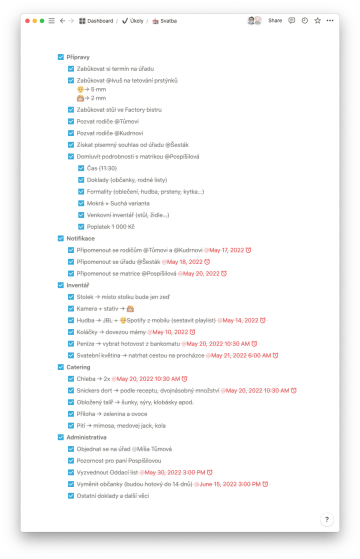 Veškerý zařizování se nám podařilo vhečmat do checklistu jedný A4ky